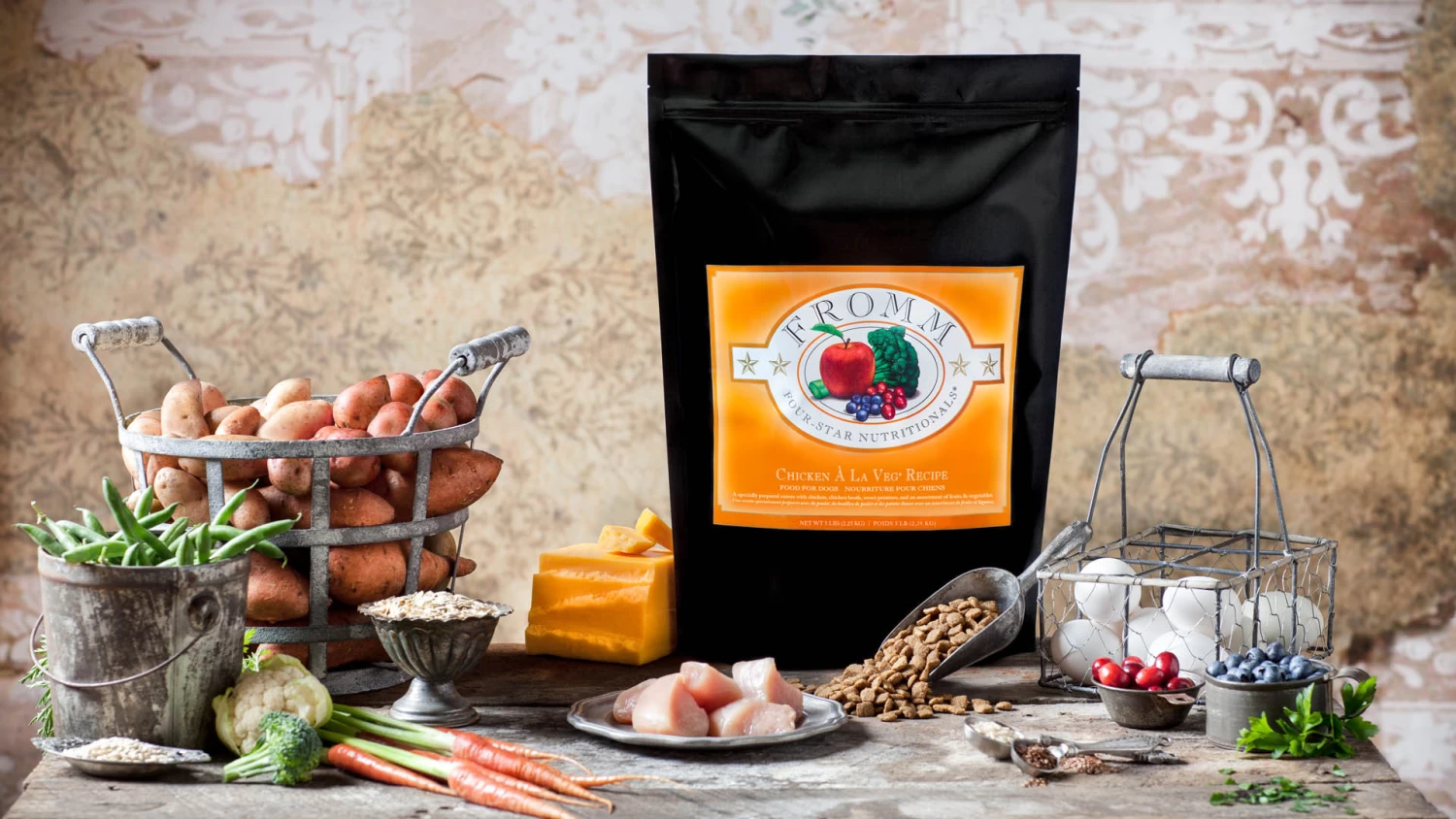 Fromm Four-Star Chicken À La Veg® Recipe Food for Dogs is a delicious entrée of chicken, chicken broth, sweet potatoes, and an assortment of fruits and vegetables. This distinctive blend is specially prepared to ensure consistency, quality, and superior taste in each and every bowl. Chicken À La Veg® Recipe provides complete and balanced nutrition for dogs of all ages and can be alternated with other Fromm Four-Star recipes.
