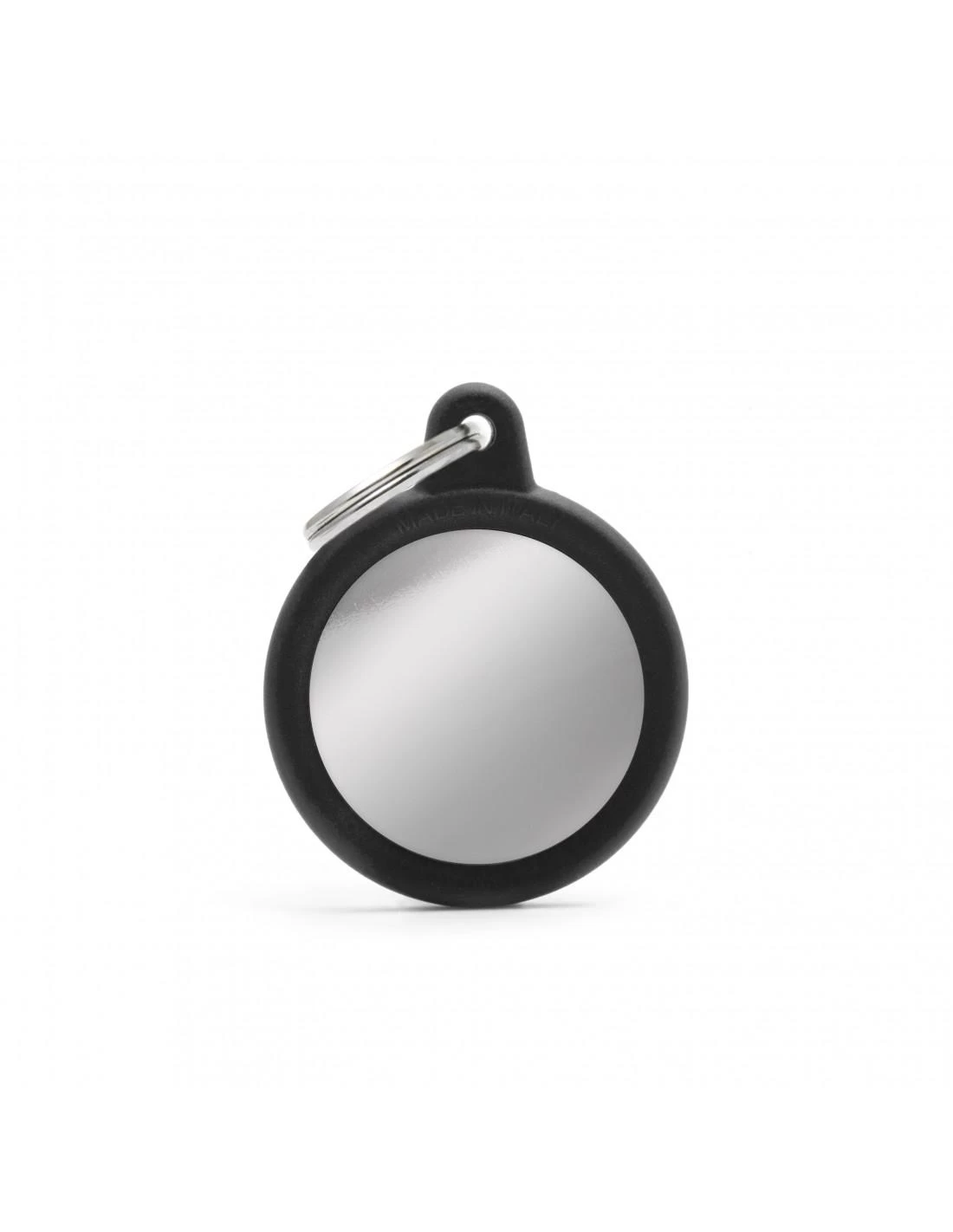 MyFamily Circle Chrome Plated Brass Black Rubber Pet ID Tag